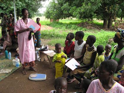 Het eerste dorpsbezoek verliep natuurlijk niet vlekkeloos en op z·n Afrikaans (mensen maar half geinformeerd, 2 uur vertraging, spullen kwijt, medicijnen niet uitgesorteerd, lekke band, noodweer aan het eind van de middag), maar toch zijn er mede dankzij de hulp van Saskia van Vugt (vrijwillige arts) weer veel moeders en kinderen geinformeerd, onderzocht en behandeld met o.a. wormenkuren en mallaria-tabletten.